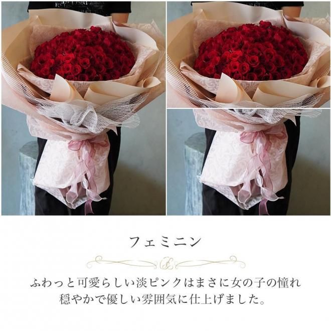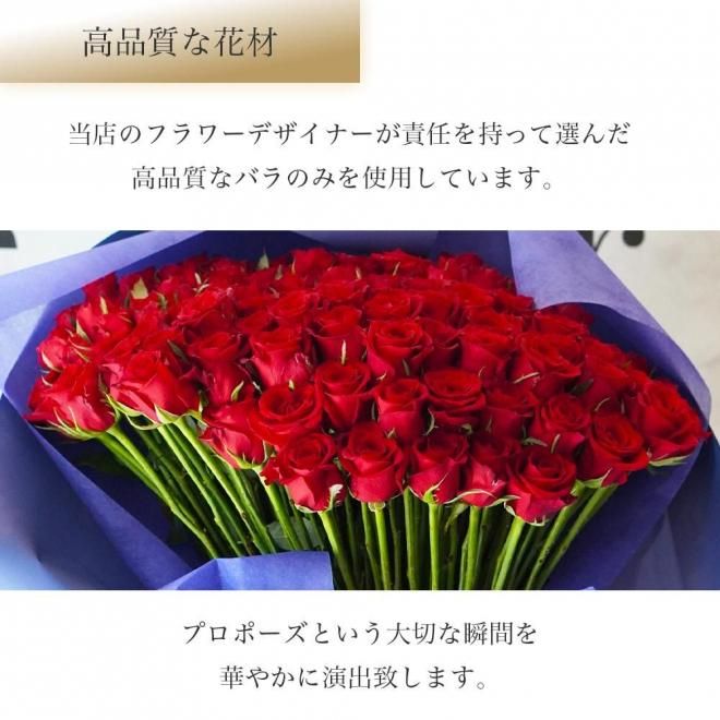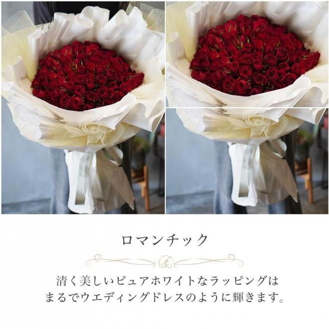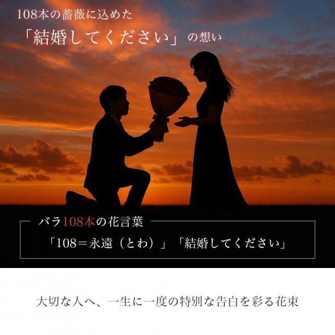 108本のバラは「結婚してください」という意味を持ちます。また、「108=永遠(とわ)」と読めることから、永遠の愛を誓う花束になります。